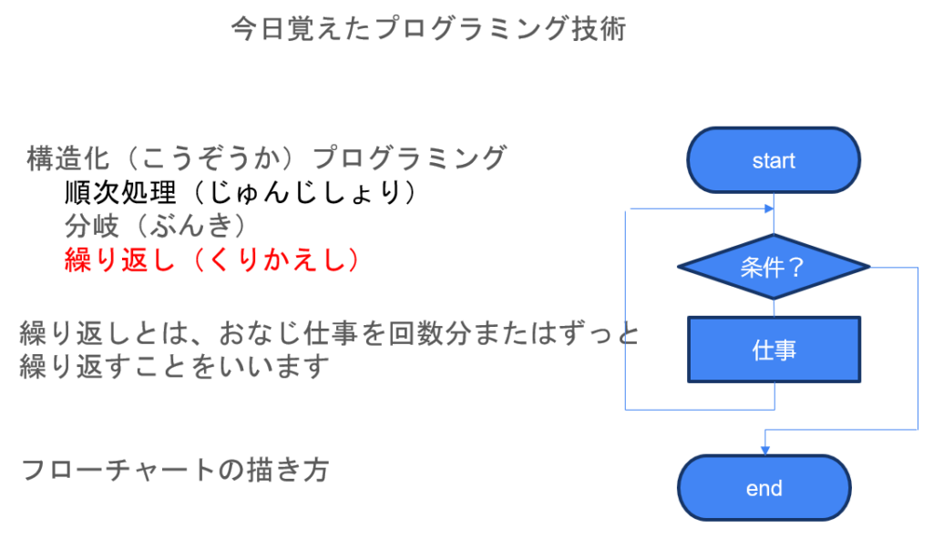 フローチャートを教えるには1コマ必要と感じた