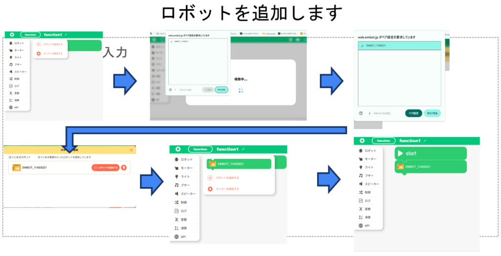 • 1回目では、embotとandroidタブレットで接続がうまくできなかったので、embotのロボット認識するときに下4桁をembotとandroidタブレットに貼り付けた