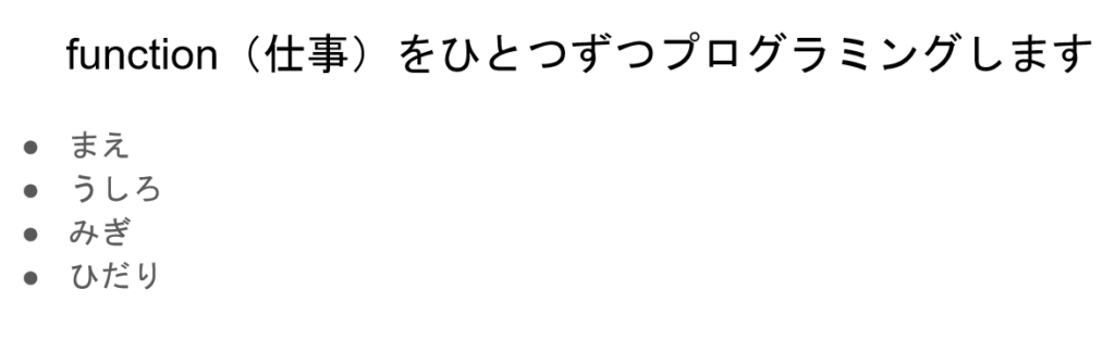 Functionでまえ、うしろ、みぎ、ひだりの4つを作る