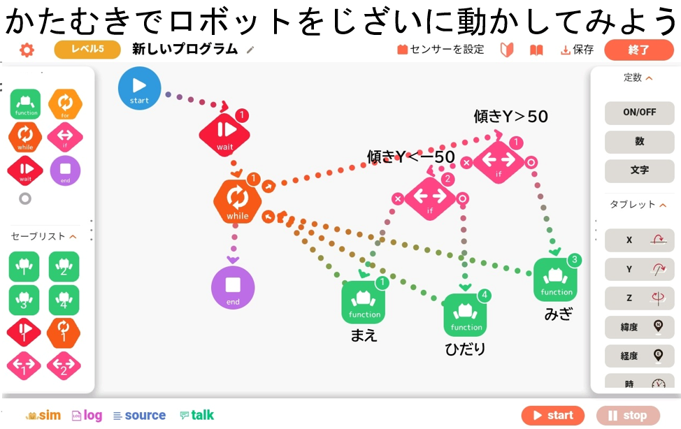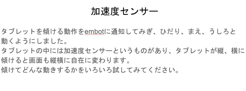 - Androidタブレットの加速度センサーを利用してデータをembotに送りリモコンとして動かす